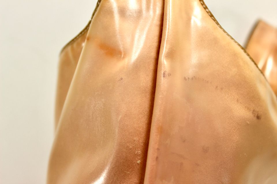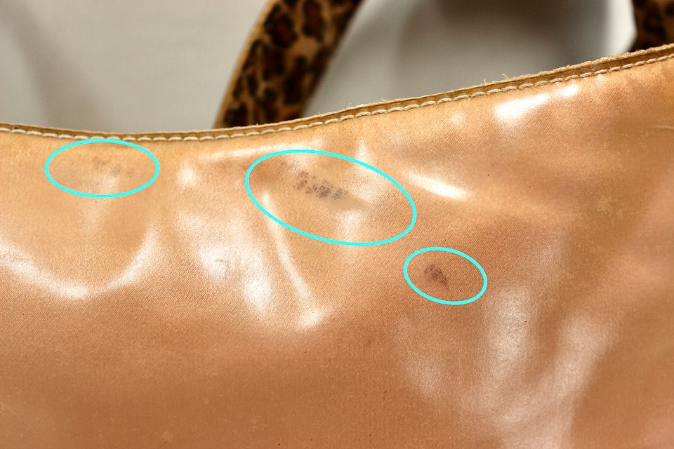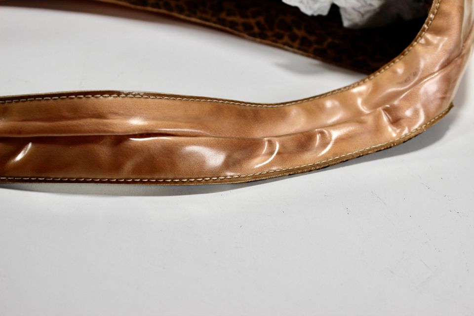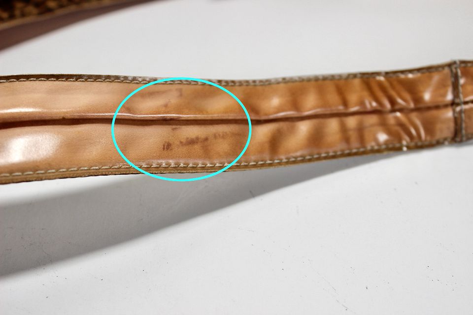 External covering in fair to good condition, no scratches or rips but some small dark marks and creasing (see photos). Inside lining in good condition, clean, no marks or stains. Please examine the photos below in the full item description to further evaluate, all sales are final, no returns or exchanges, thanks for looking!