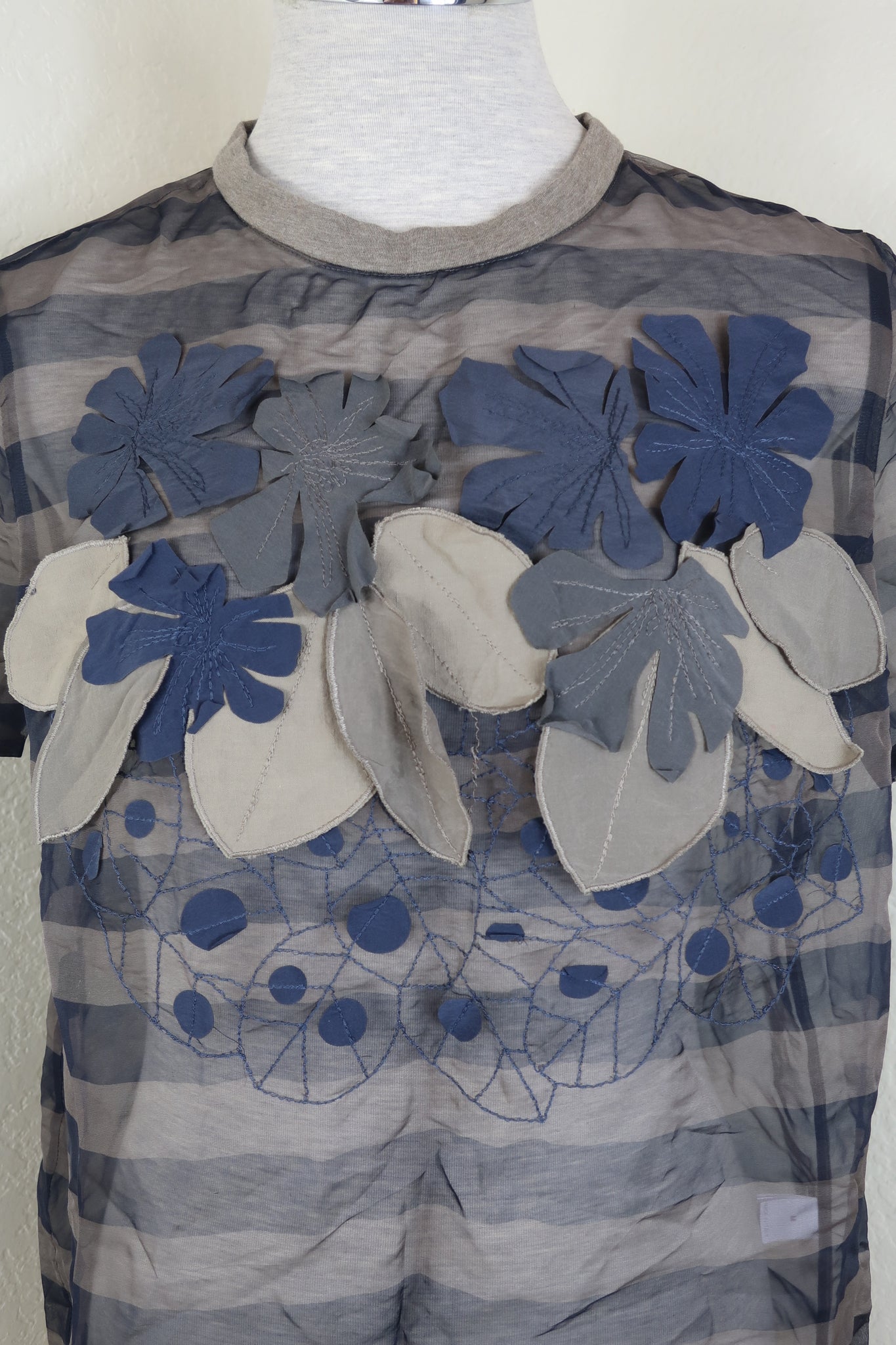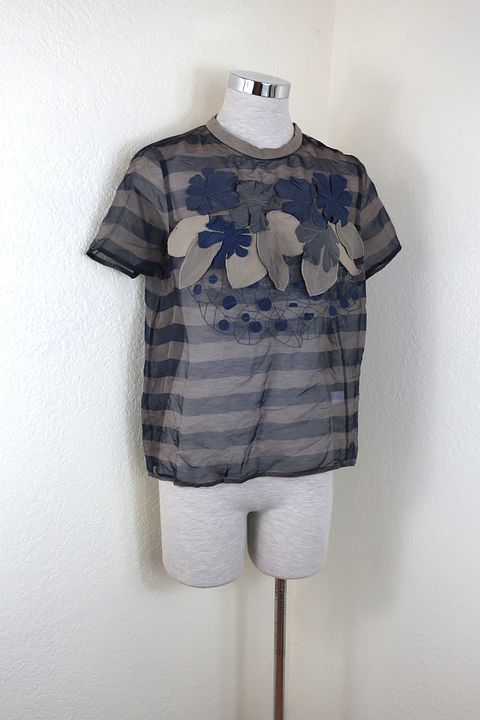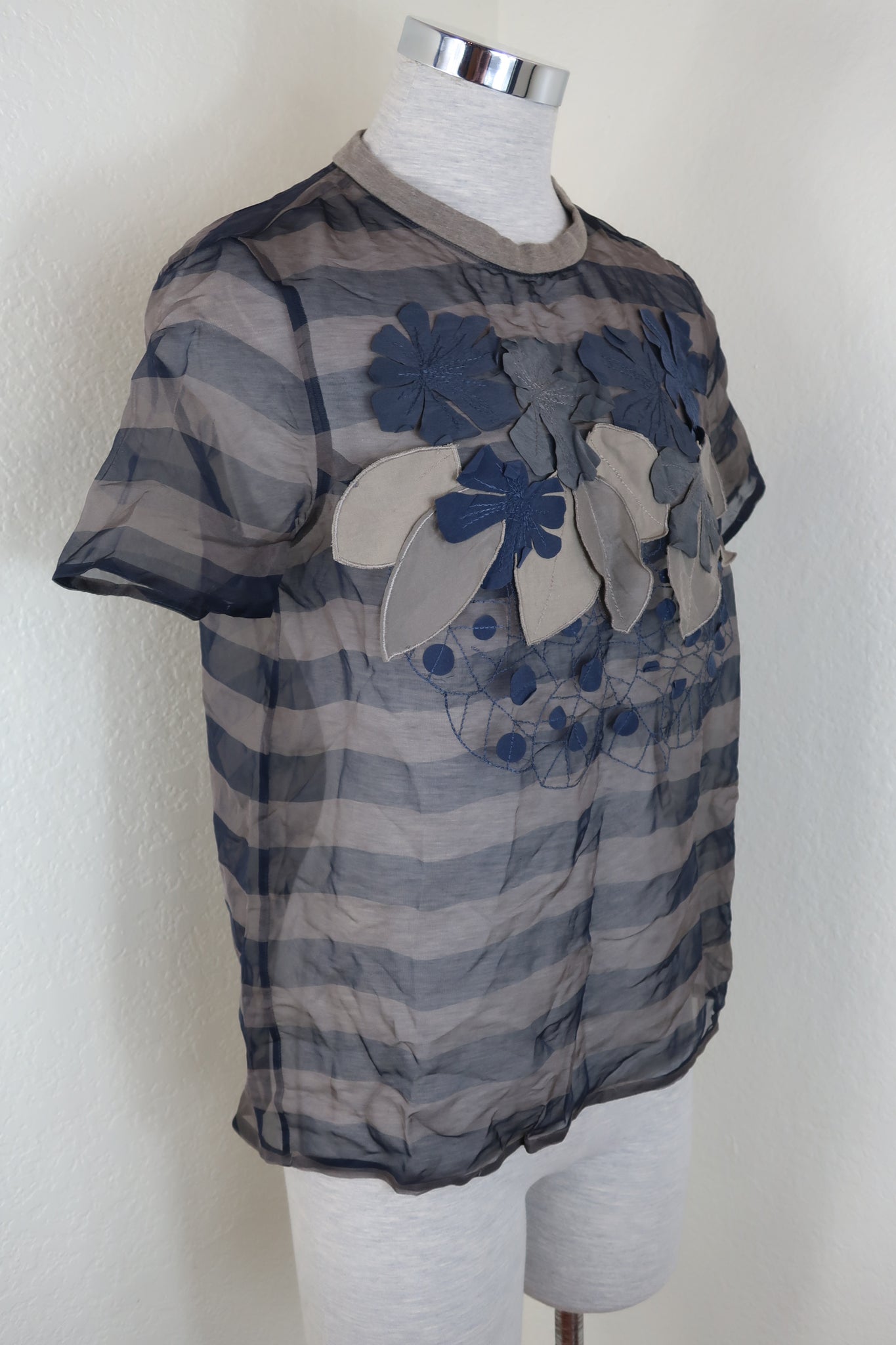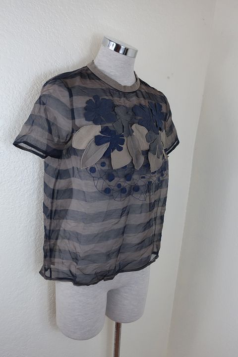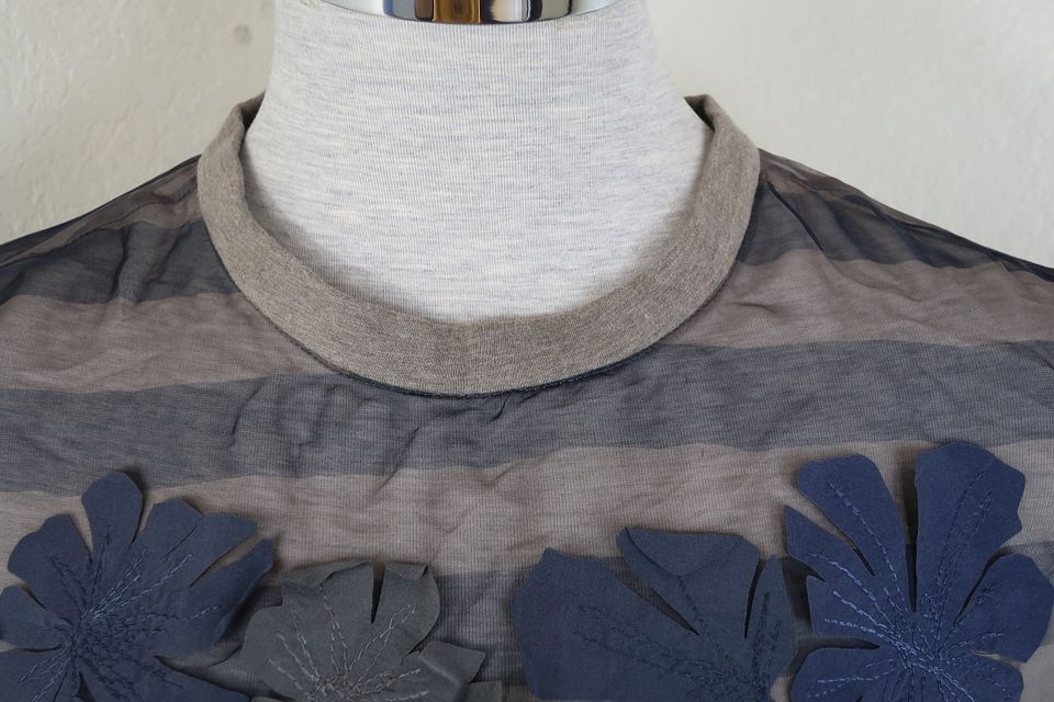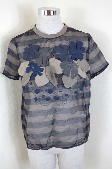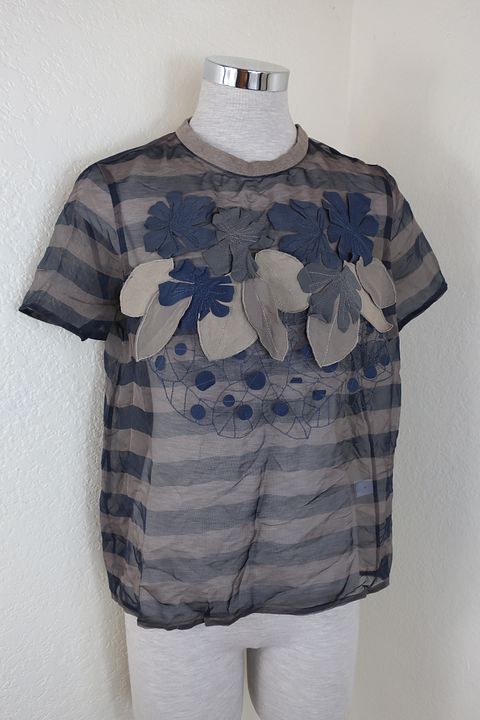 Authenticity guaranteed BRUNELLO CUCINELLI greyish-green with floral patch mesh top
