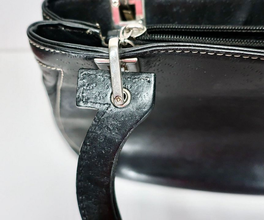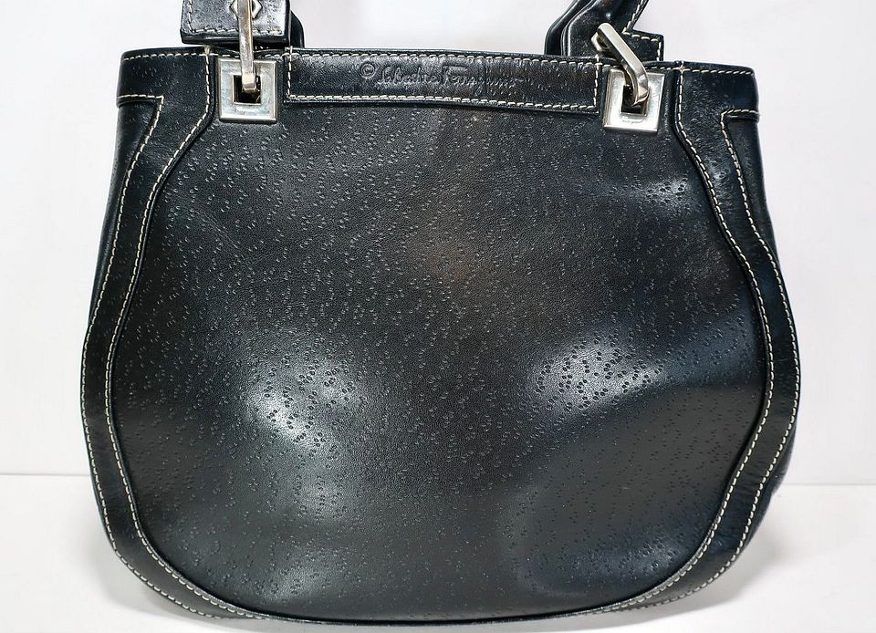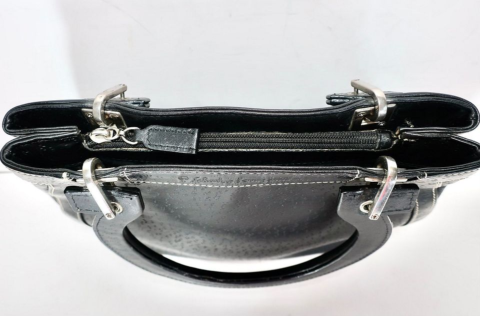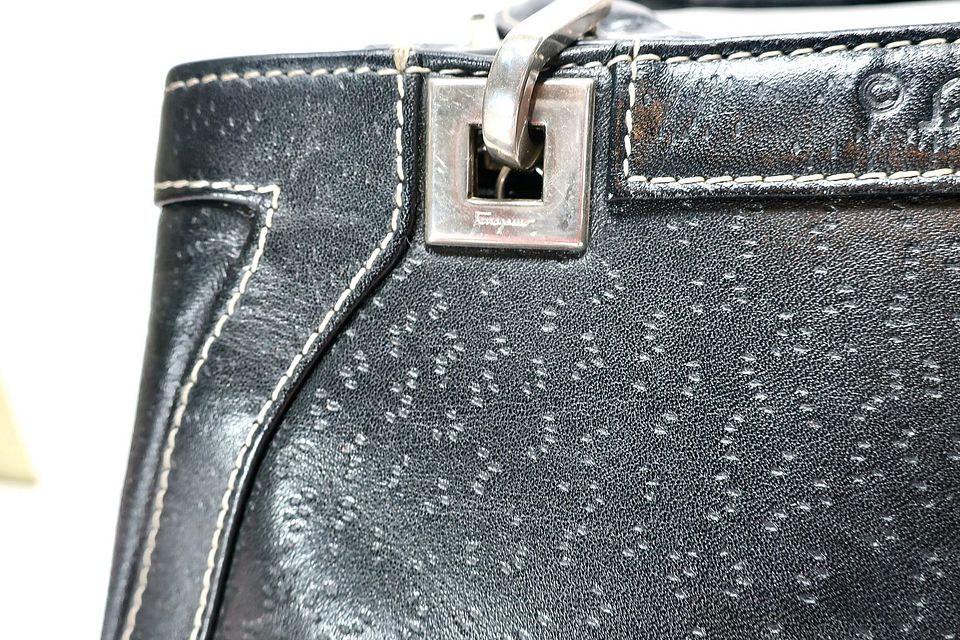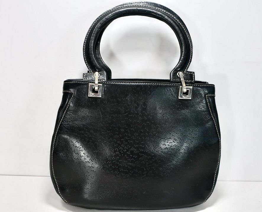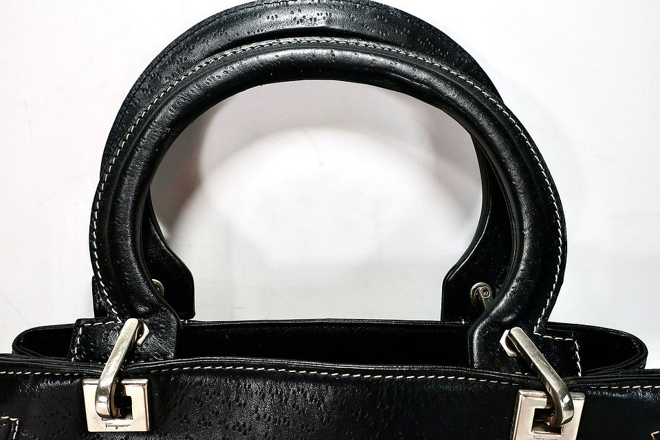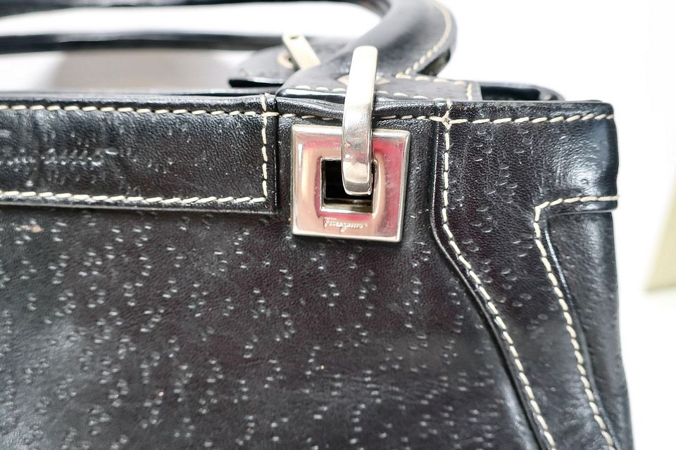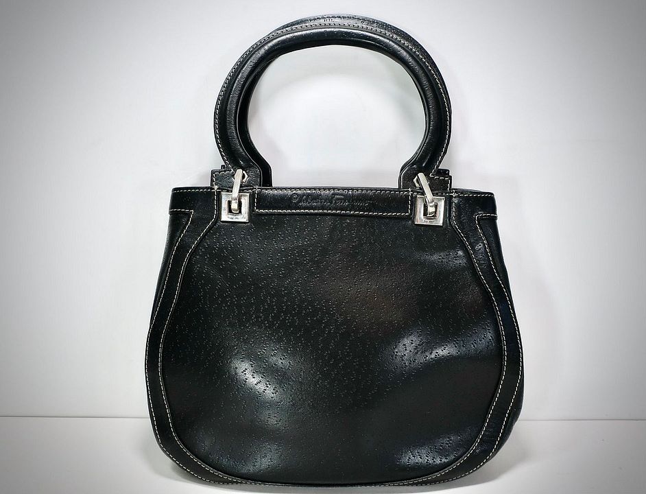 SALVATORE FERRAGAMO Textured Black Leather Gancini Hand Bag Tote Top Handle
