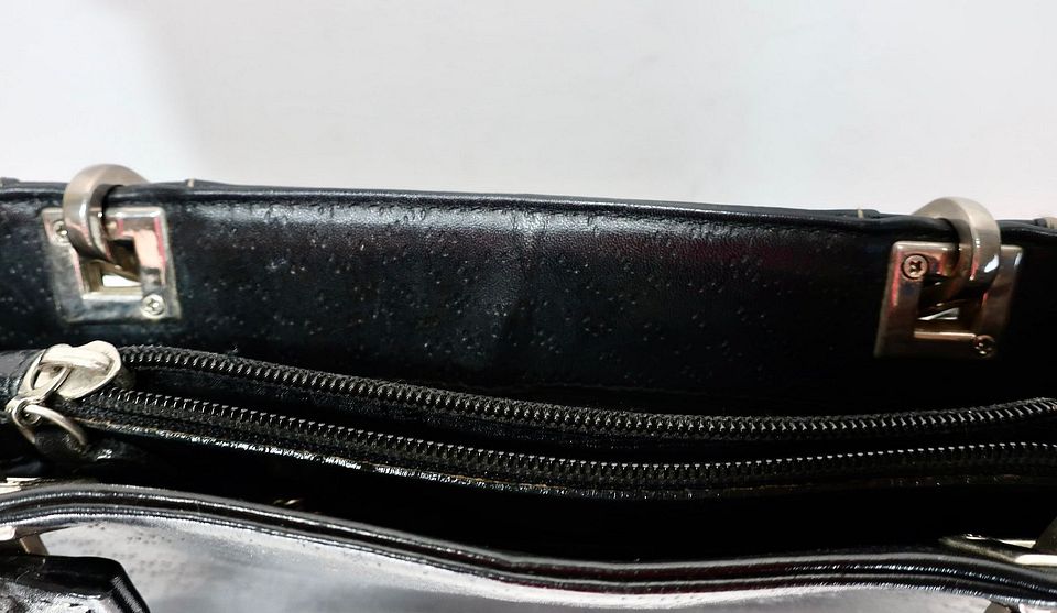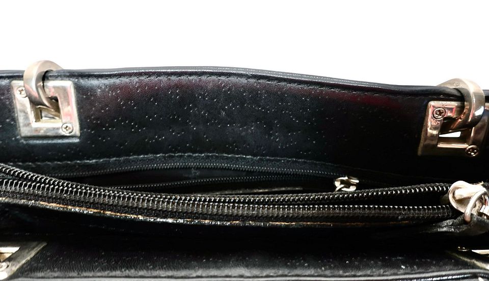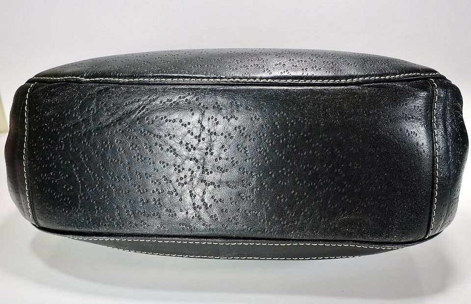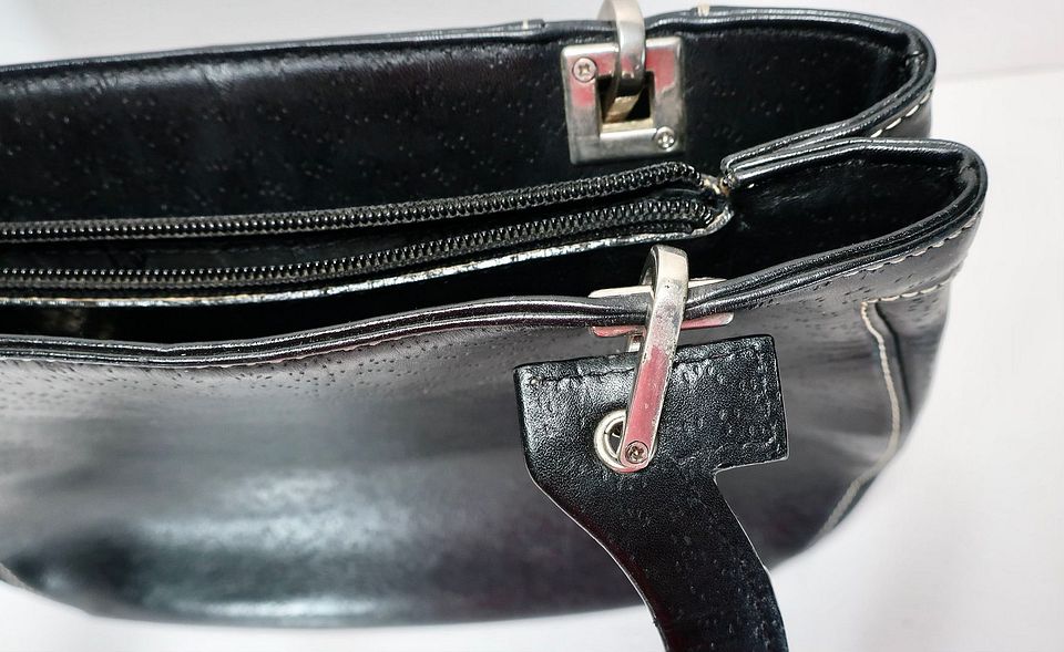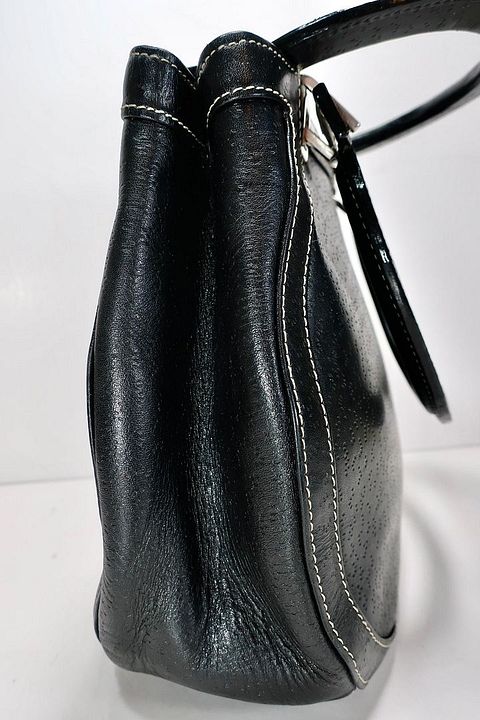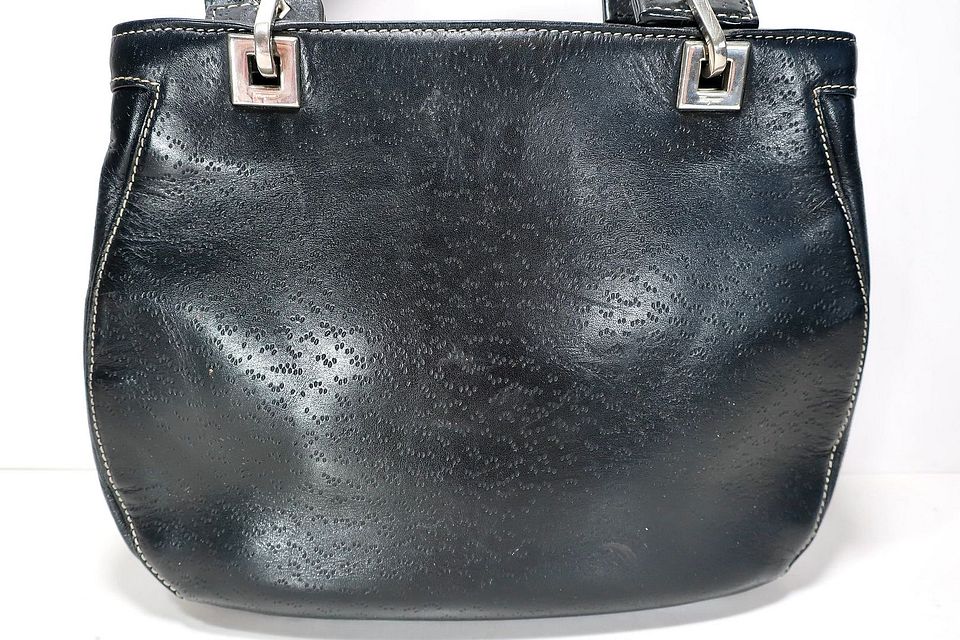 Exterior leather in good condition, no large marks or scratches, just a few very light scuffs and one small mark on back side, only visible upon close inspection. Leather handles in good condition. Inside lining in good condition, no marks or stains. Please examine the photos below in the full item description to further evaluate this bag, all sales are final, no returns or exchanges, thanks for looking!